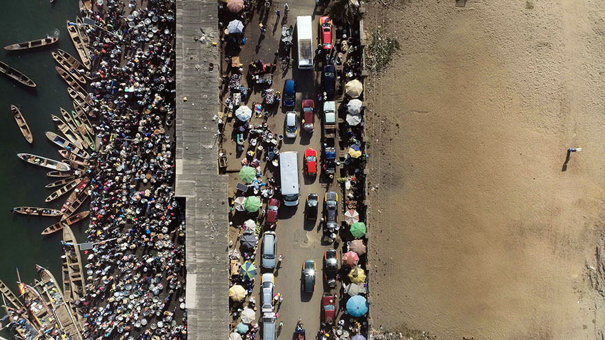 A variety of transportation seen from above in the coastal town Elmina. Elmina’s traditional meaning, Edina, translates to inexhaustible supply of water.