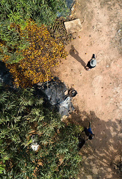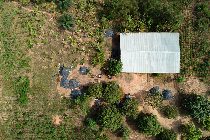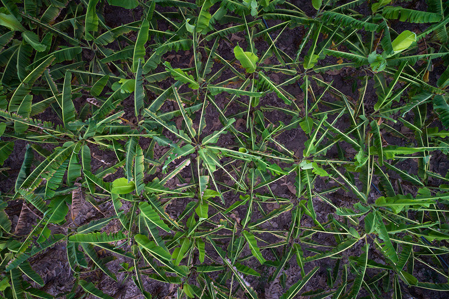Plantain trees seen from above at one of the UOWIAP farms. Plantains are a staple in the Ghanaian diet and find their place in almost every meal.
