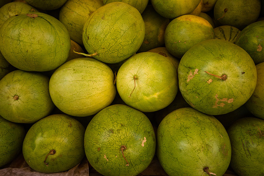 A stack of watermelons at the Dome Market in Accra.