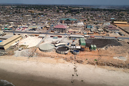 Safisana inputs organic waste and public toilet waste to output organic fertilizer and electricity to communities around Accra, Ghana.