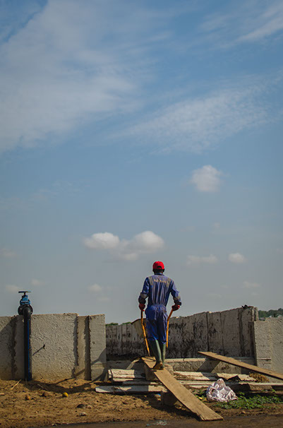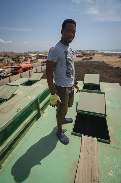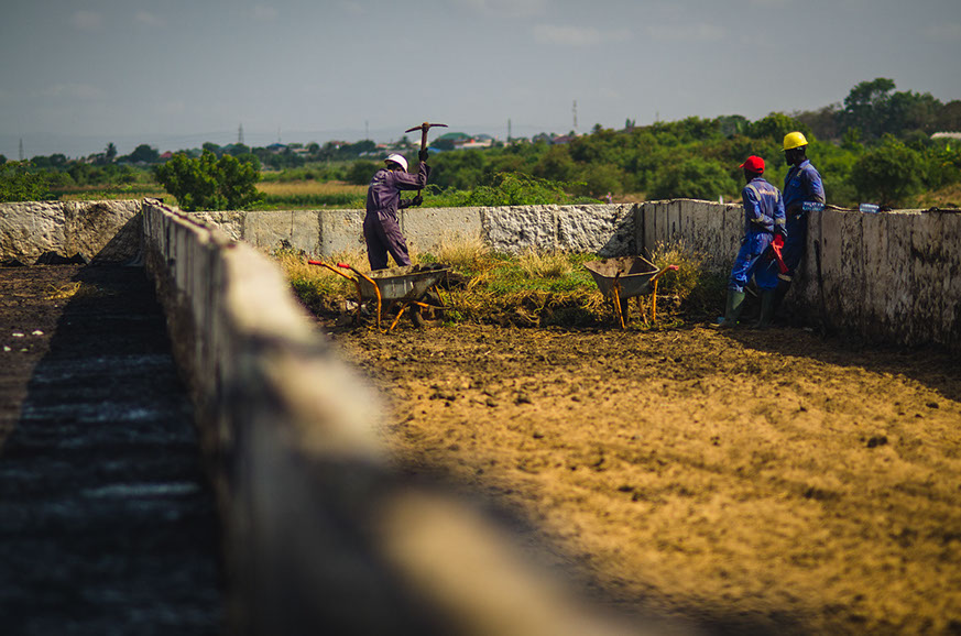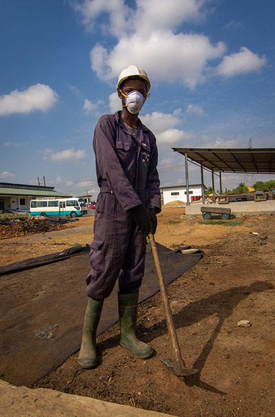 Workers at Safisana transfer supplies to another part of the facility as part of the compost process. Safisana’s objectives in providing organic fertilizer and electricity address eight of Ghana’s Sustainable Goals Agenda. These include good health and well-being, gender equality, clean water and sanitation, affordable and clean energy, decent work and economic growth, industry, innovation, and infrastructure, sustainable cities and communities, and climate action.