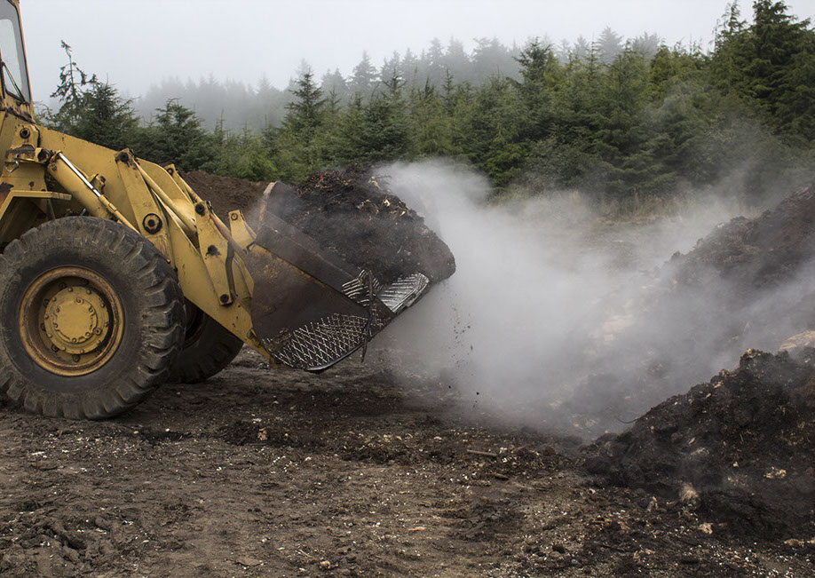 A hint of manure fills the air around the Seacoast Compost property two miles uphill from the fishing docks of Charleston, Oregon. The aroma is surprisingly mild considering the massive piles of active compost sprawled throughout the acreage.